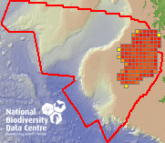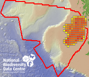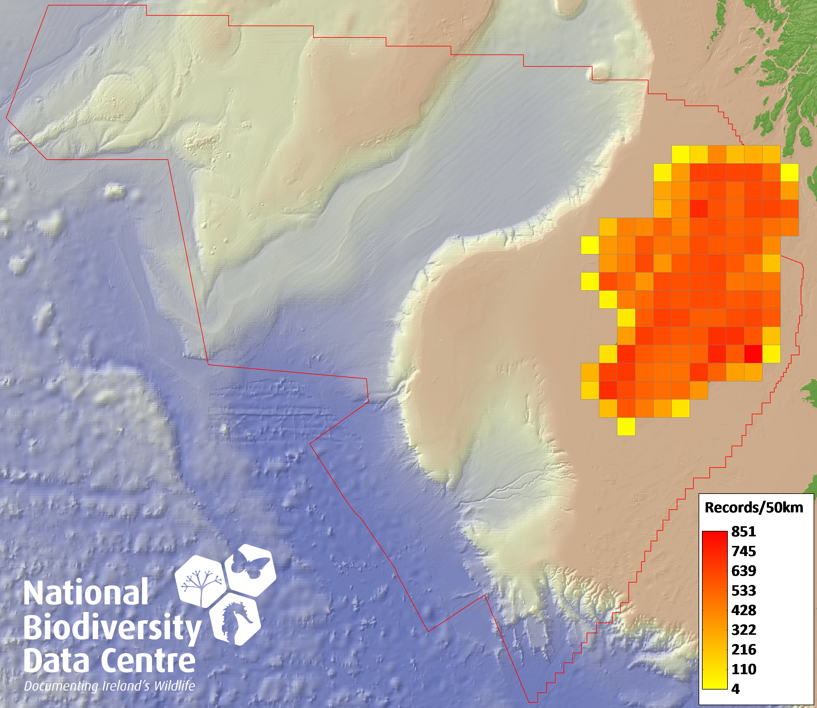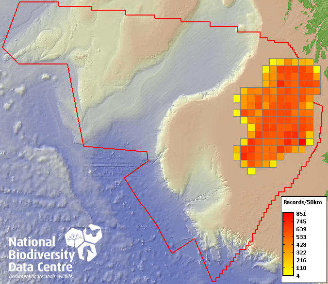 Distribution of the number of records within each 10km grid square (ITM).Marine Map - 50Km