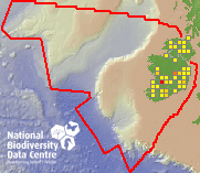 Distribution of the number of records within each 10km grid square (ITM).Marine Map - 50Km